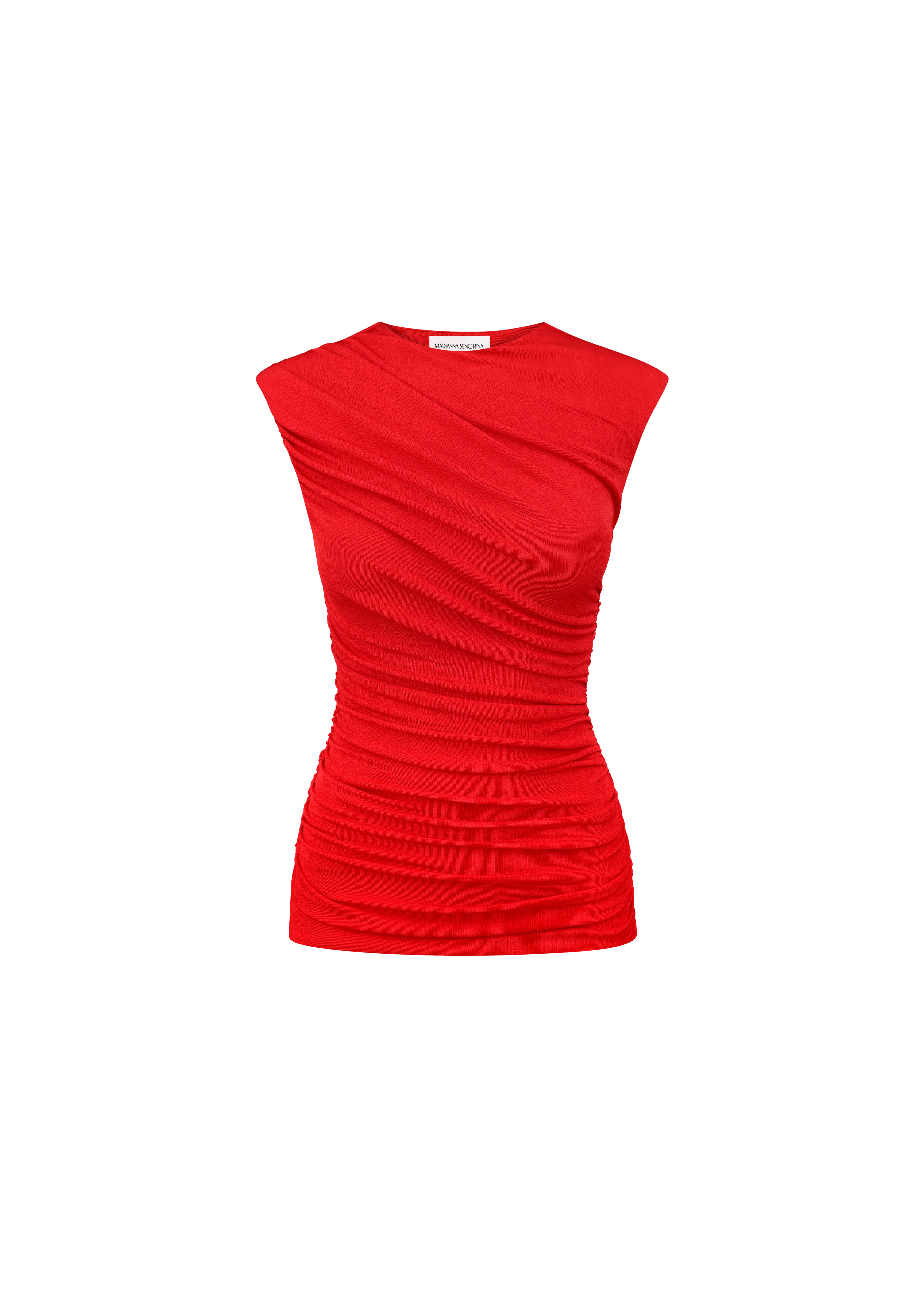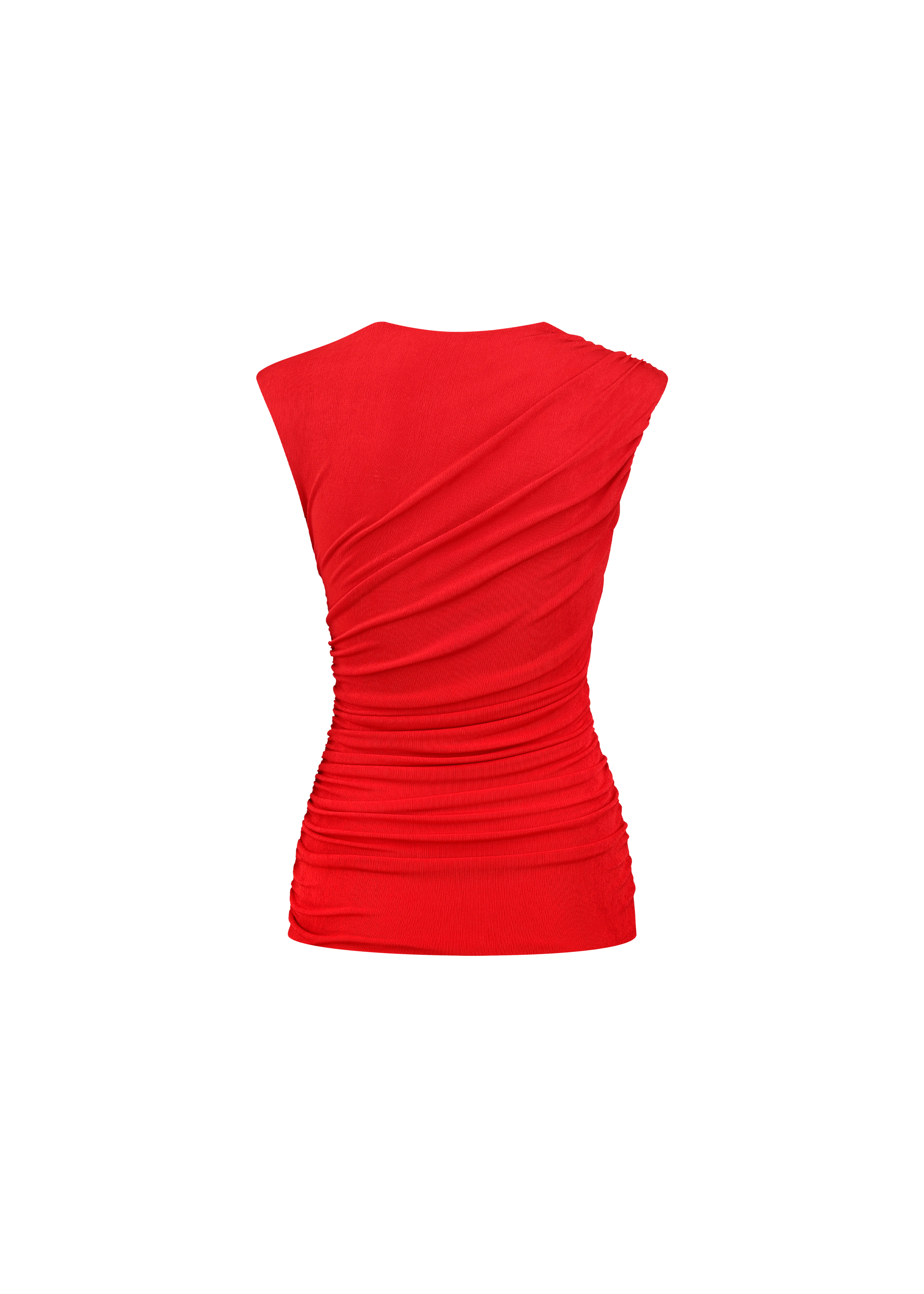 Sleeveles ruched top in ruby red color. Perfect for those who appreciate the fusion of simplicity and striking details in their wardrobe, this top is sure to captivate attention wherever you go.