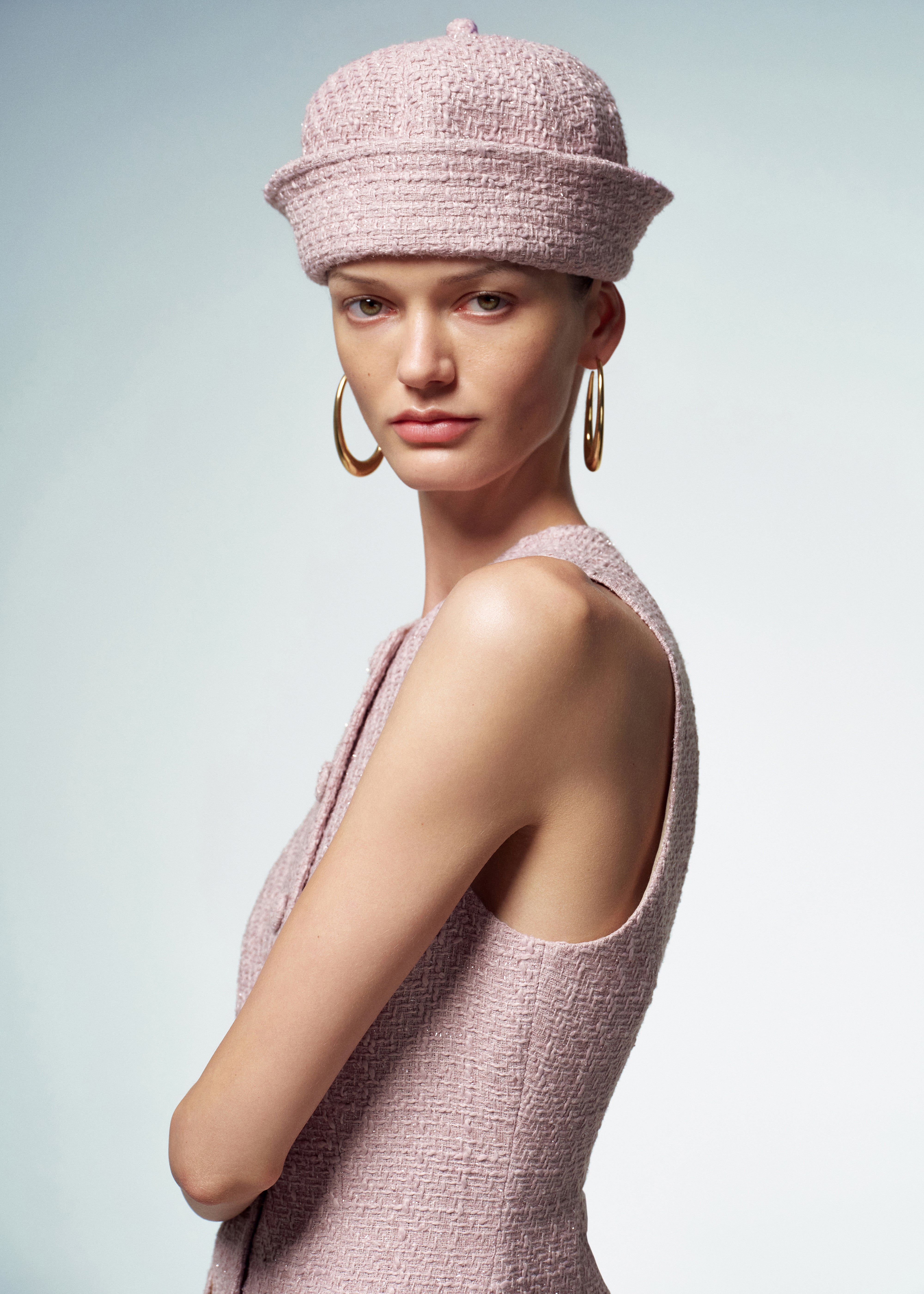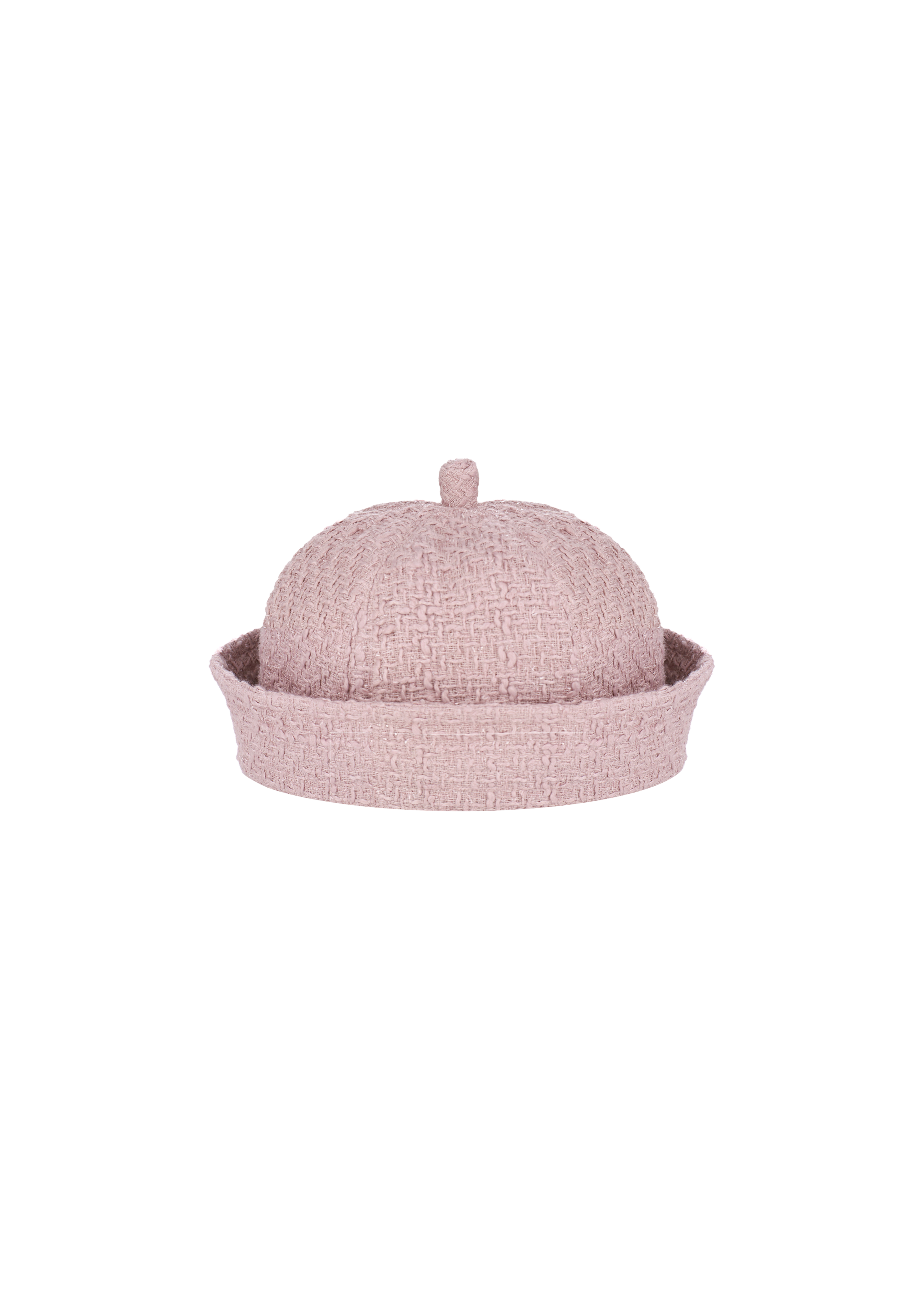 Our iconic sailor hat, a timeless and signature piece from the Marianna Senchina collections. This season, we present a stunning variation in dusty pink tweed with lurex thread. Fully lined.
