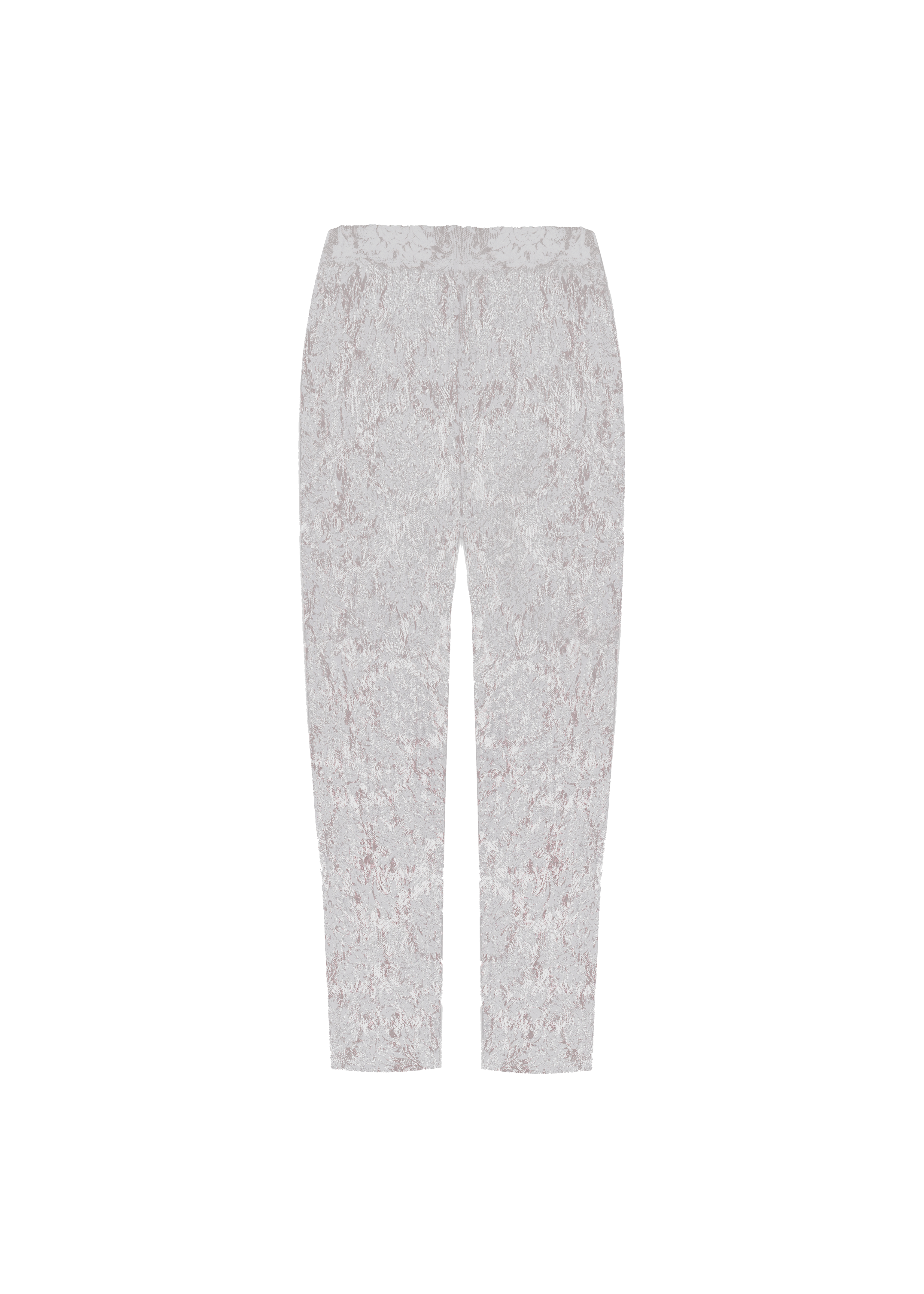 Decadence biker shorts in milky lace. These long biker shorts, featuring an elasticated waistband, redefine sophistication, seamlessly blending comfort with chic style. The intricate lace detailing adds a touch of delicacy to the edgy biker shorts, making them a versatile choice for various occasions.